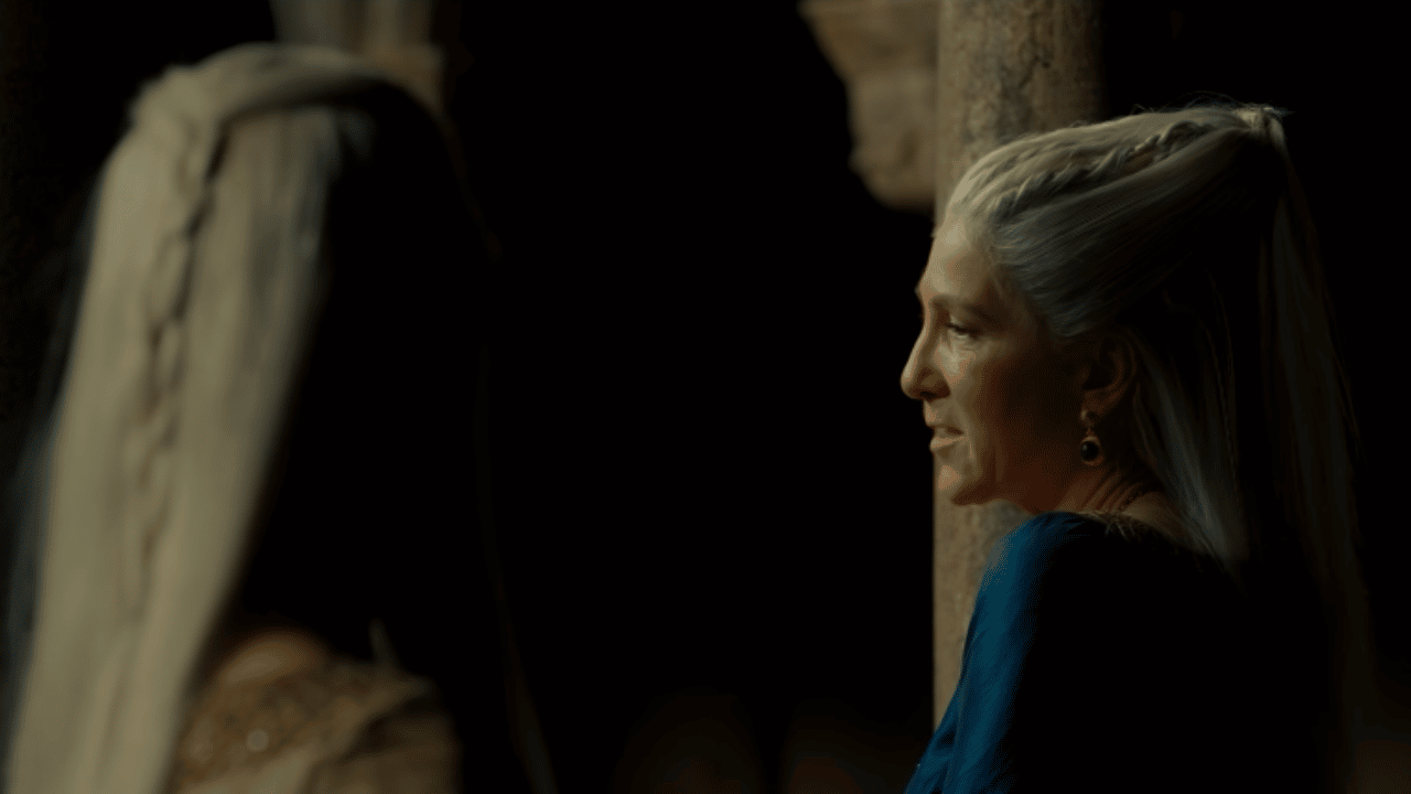 L’épouse du roi Viserys, la reine Aemma Arryn (Sian Brooke), est déterminée à lui donner un héritier mâle pour prendre le trône de fer.